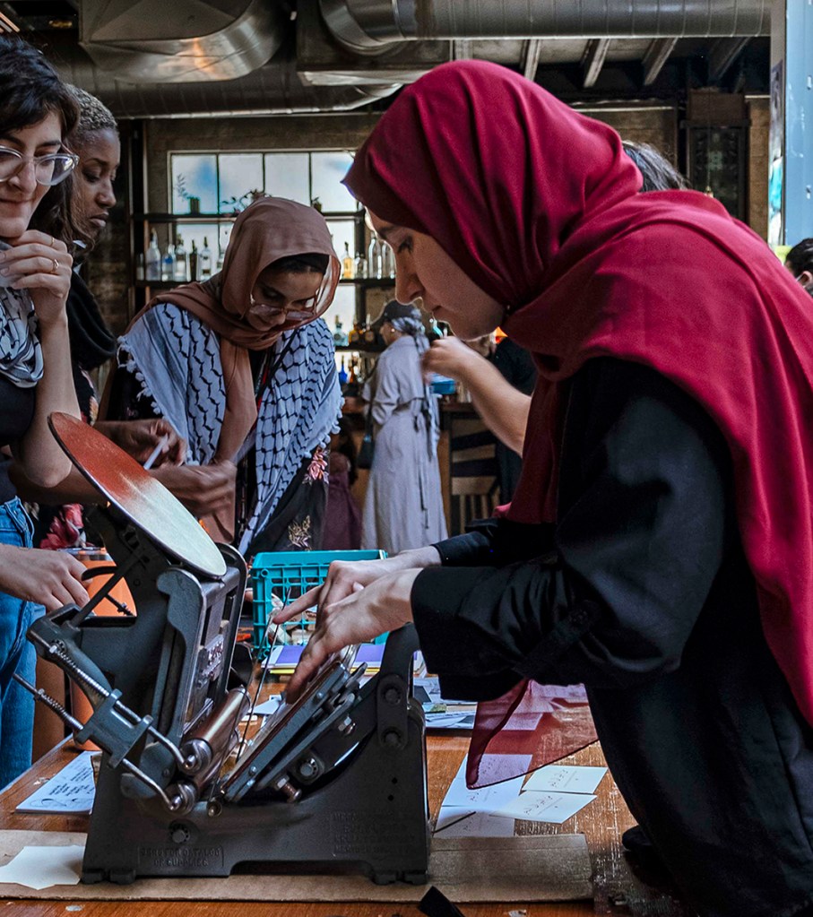 Her practice is concerned with print praxis and anti-colonial cultural production, particularly in the face of imperial hegemonies and erasure, with a focus on printmaking, book arts, and Arabic letterpress and movable type. She is co-founder of Maamoul Press, an award-winning independent publishing project.